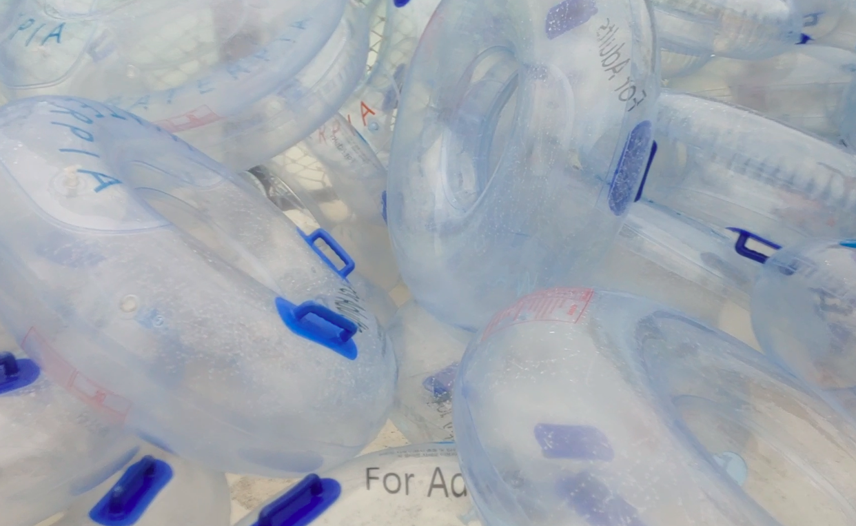 하나를 집어들고 물로 걸어가면 뒤에서 안전요원이 허리에 튜브를 끼우고 진한 파란색 구역까지 들어가라고 알려줍니다.