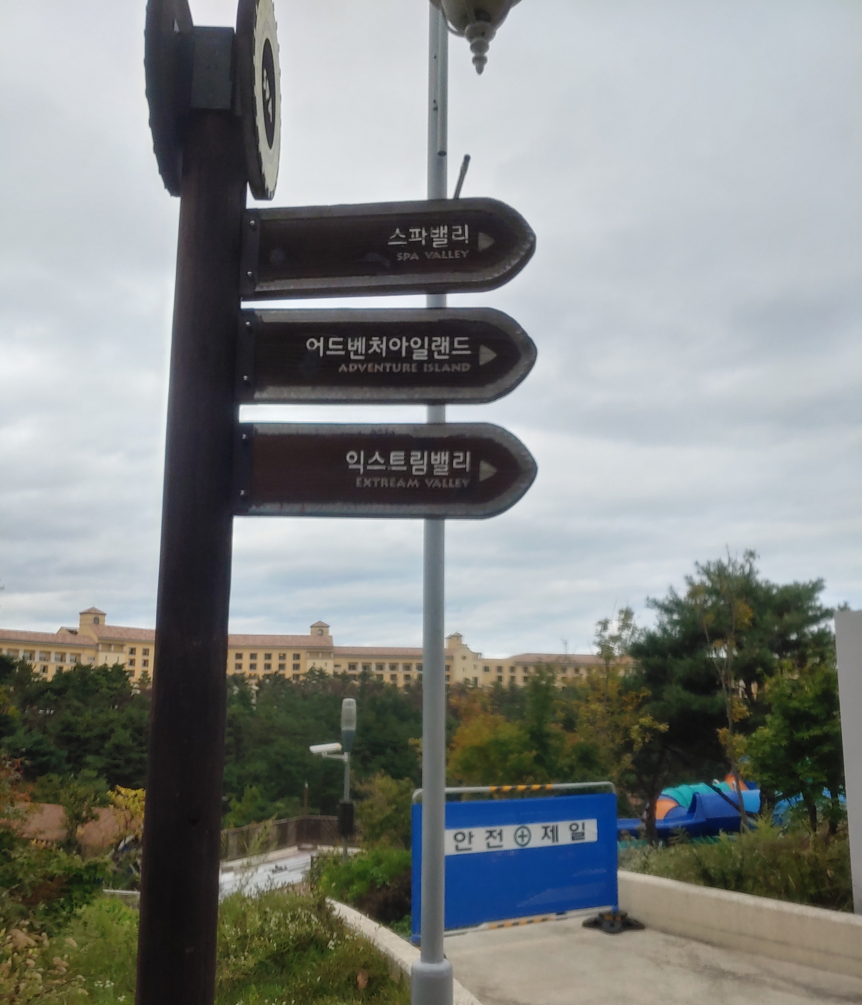 야외로 나왔더니 떡하니 공사장이 반겨줍니다. 스파밸리가 주목적이었는데 현재 리뉴얼 공사 중이라고 합니다. 눈물을 머금고 어트랙션이 있는 곳으로 이동을 합니다.